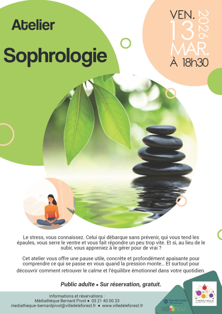 La médiathèque vous propose un atelier sophrologie le vendredi 13 mars à 18h30 afin d’apprendre à gérer votre stress.