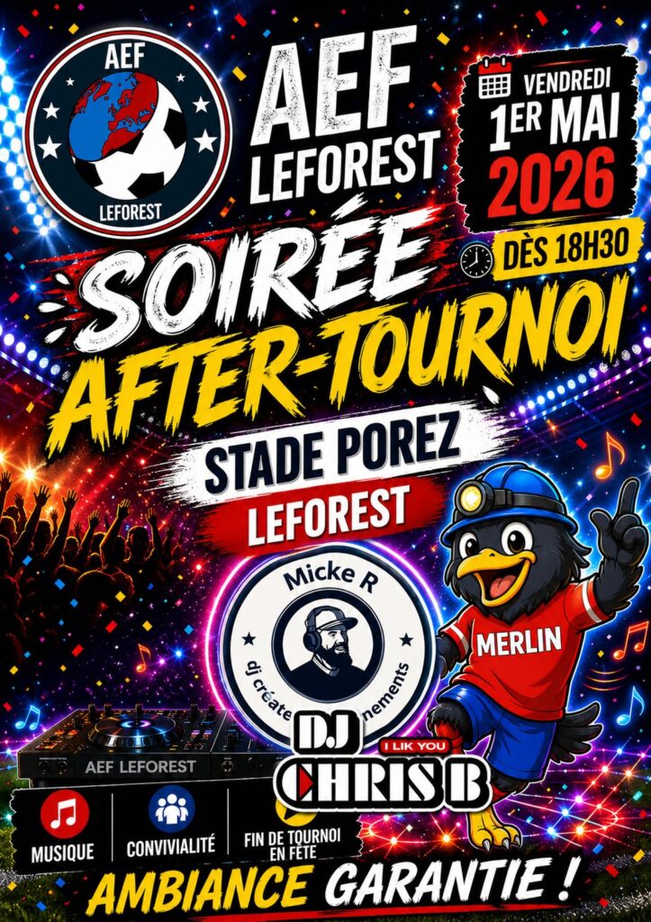 L’A.E.Football Leforest organise, après son tournoi U10 – U11, une soirée le vendredi 1er mai dès 18h30 au stade Porez.