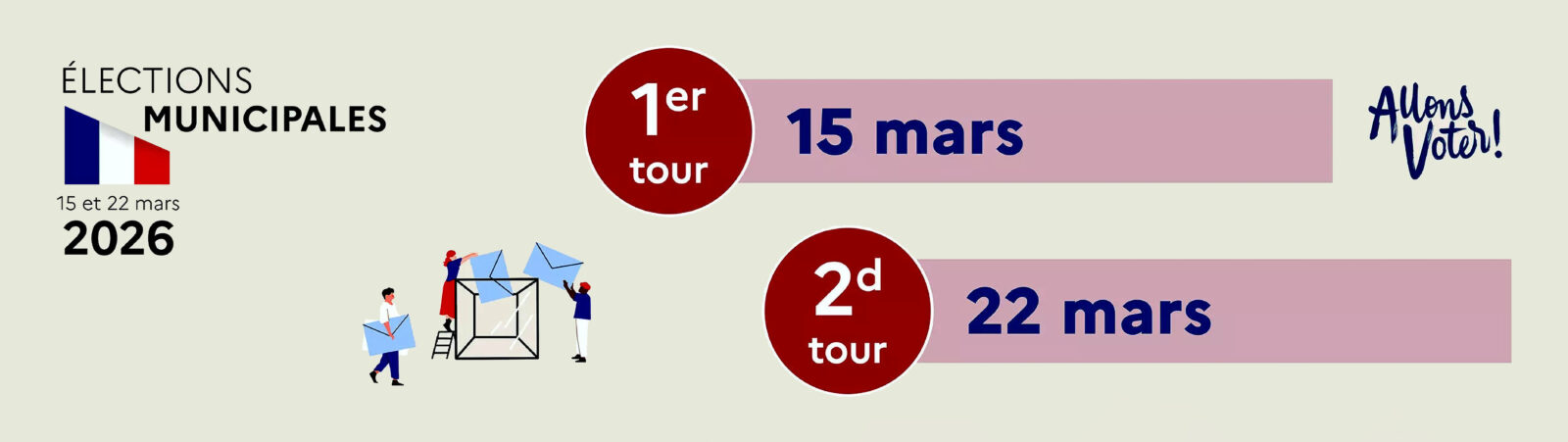 Les élections municipales et communautaires auront lieu les 15 et 22 mars 2026. Si ce n’est déjà fait, pensez à vous inscrire sur les listes électorales avant la date butoir :