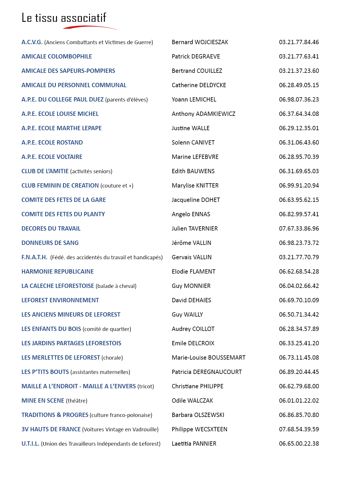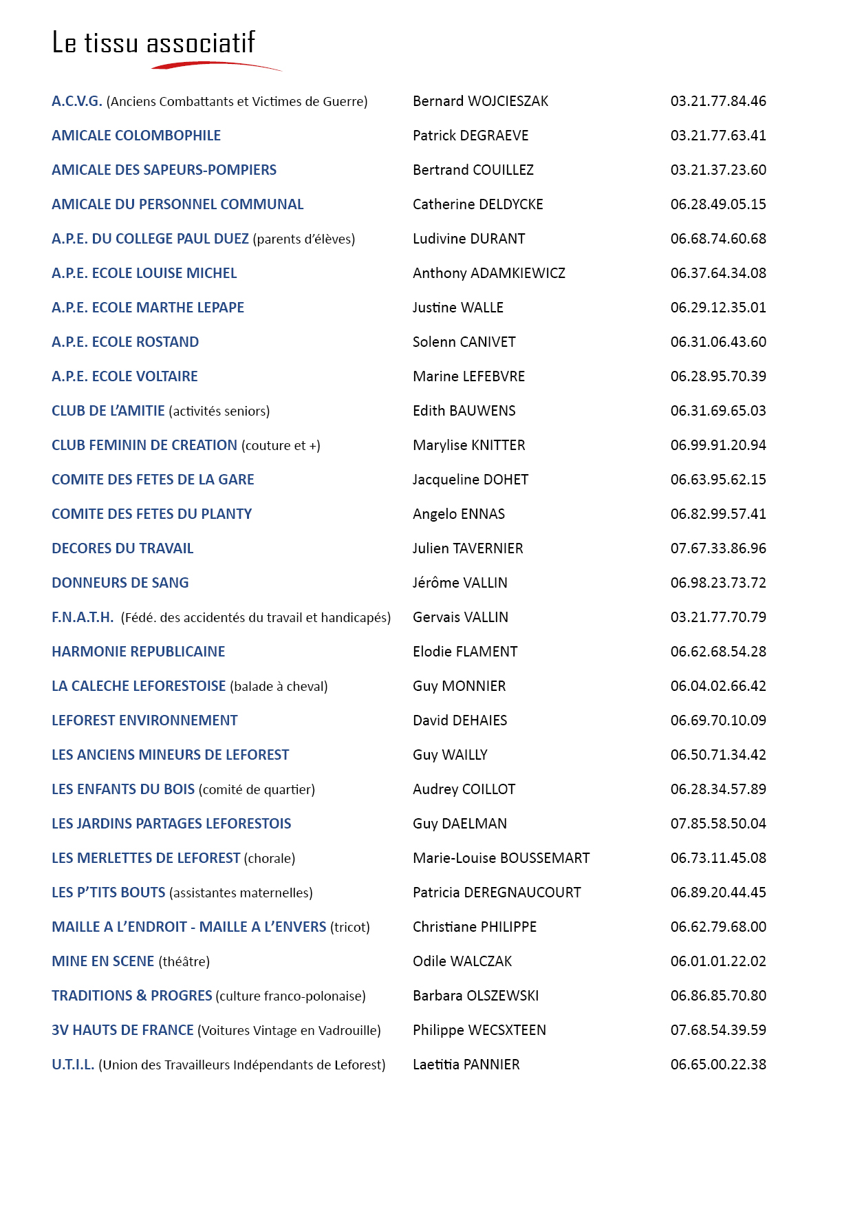 Le tissu associatif leforestois est très diversifié, il passe par la culture, les fêtes, les passions, les activités manuelles et bien d’autres encore….