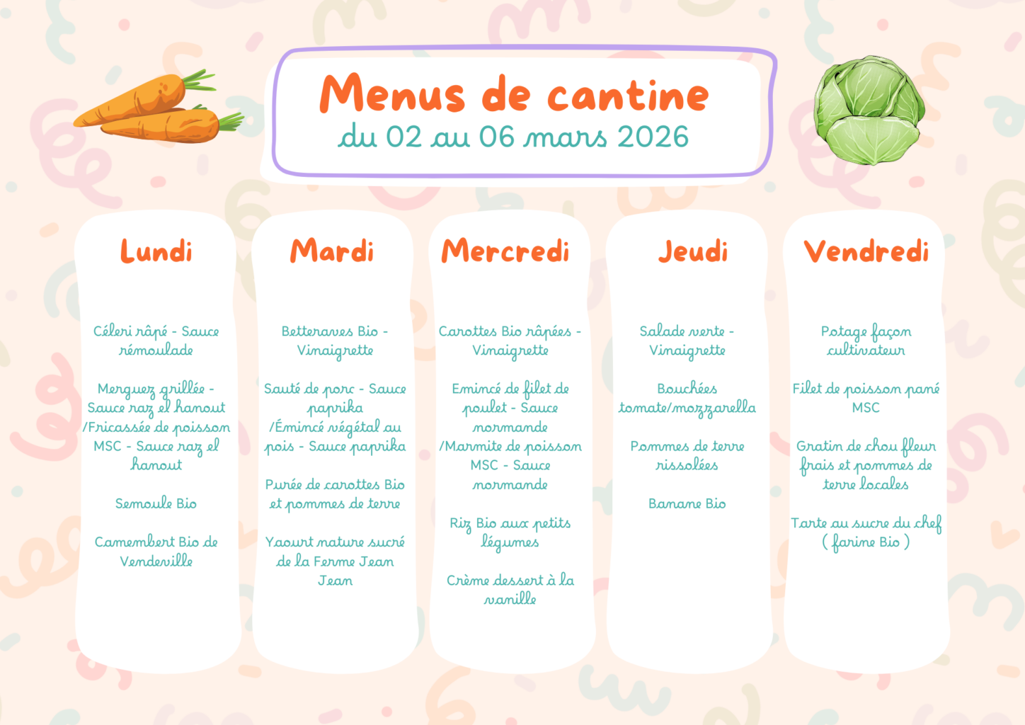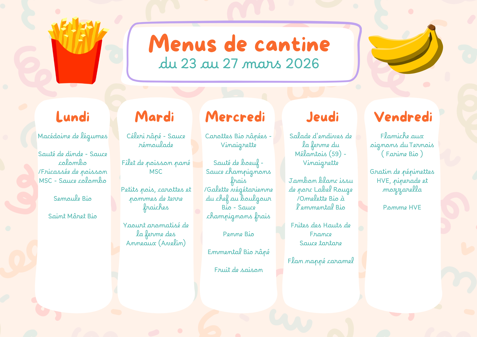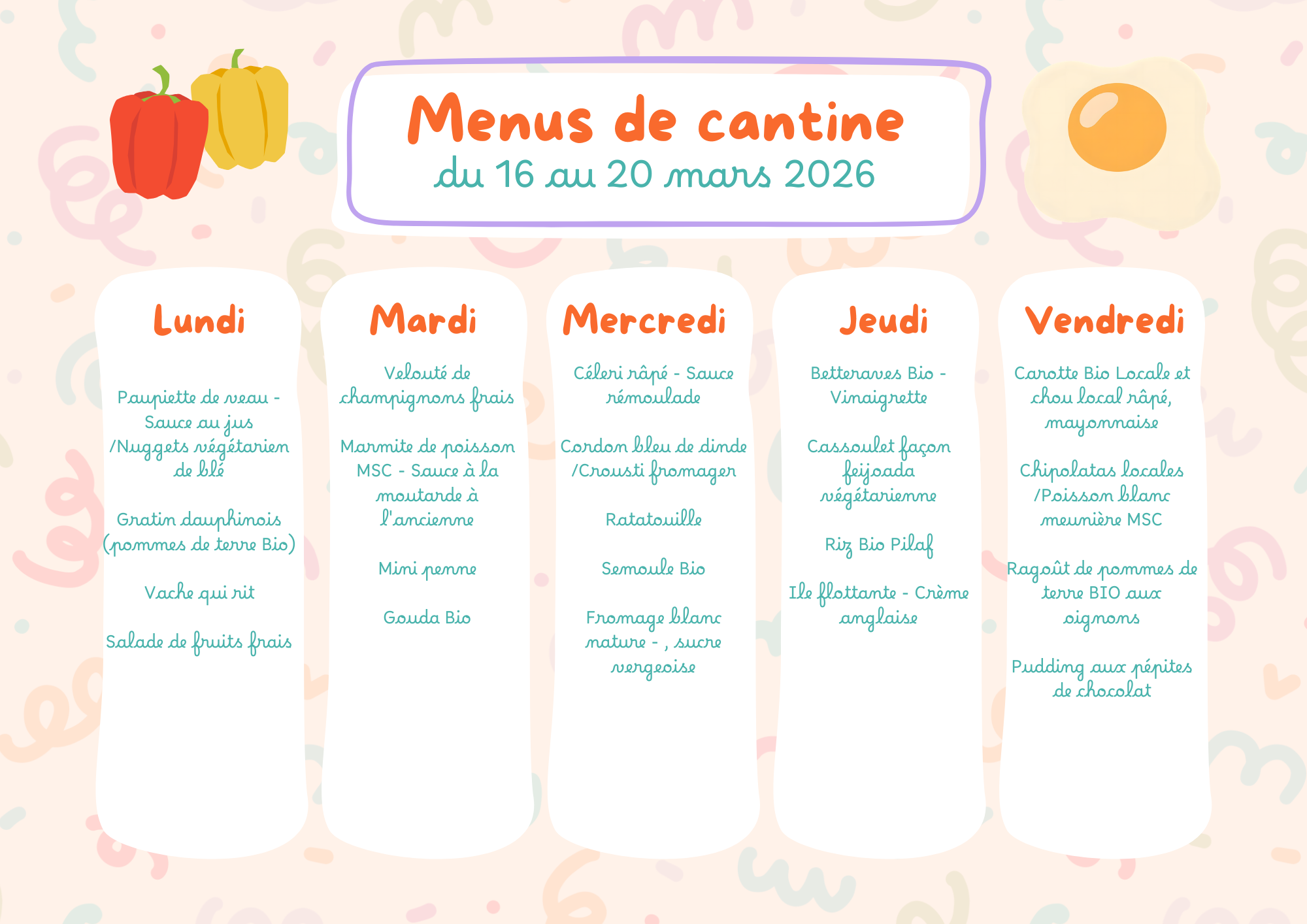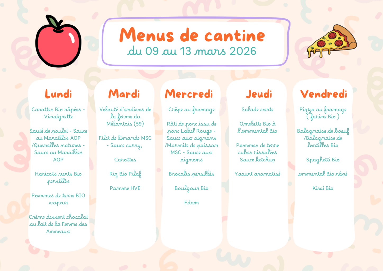 Menus de la cantine scolaire